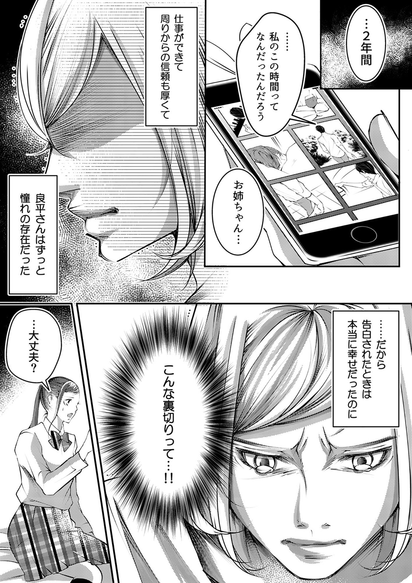 仕事は完璧だが不器用で何事にも一生懸命な26歳のOL、杉田早紀。憧れの上司・西本への想いを断ち切ろうとした矢先「離婚した」と告げられ二人は交際をスタートする。長年の想いが実り、結婚を意識した幸せの絶頂を迎える。しかし、偶然、西本の妻のSNSを見つけてしまったことで状況は一変。離婚の裏に隠された西本の“本性”と衝撃の真実が明らかになり、早紀の幸せな日常は崩れてしまう。彼女がたどり着く運命とは」?
