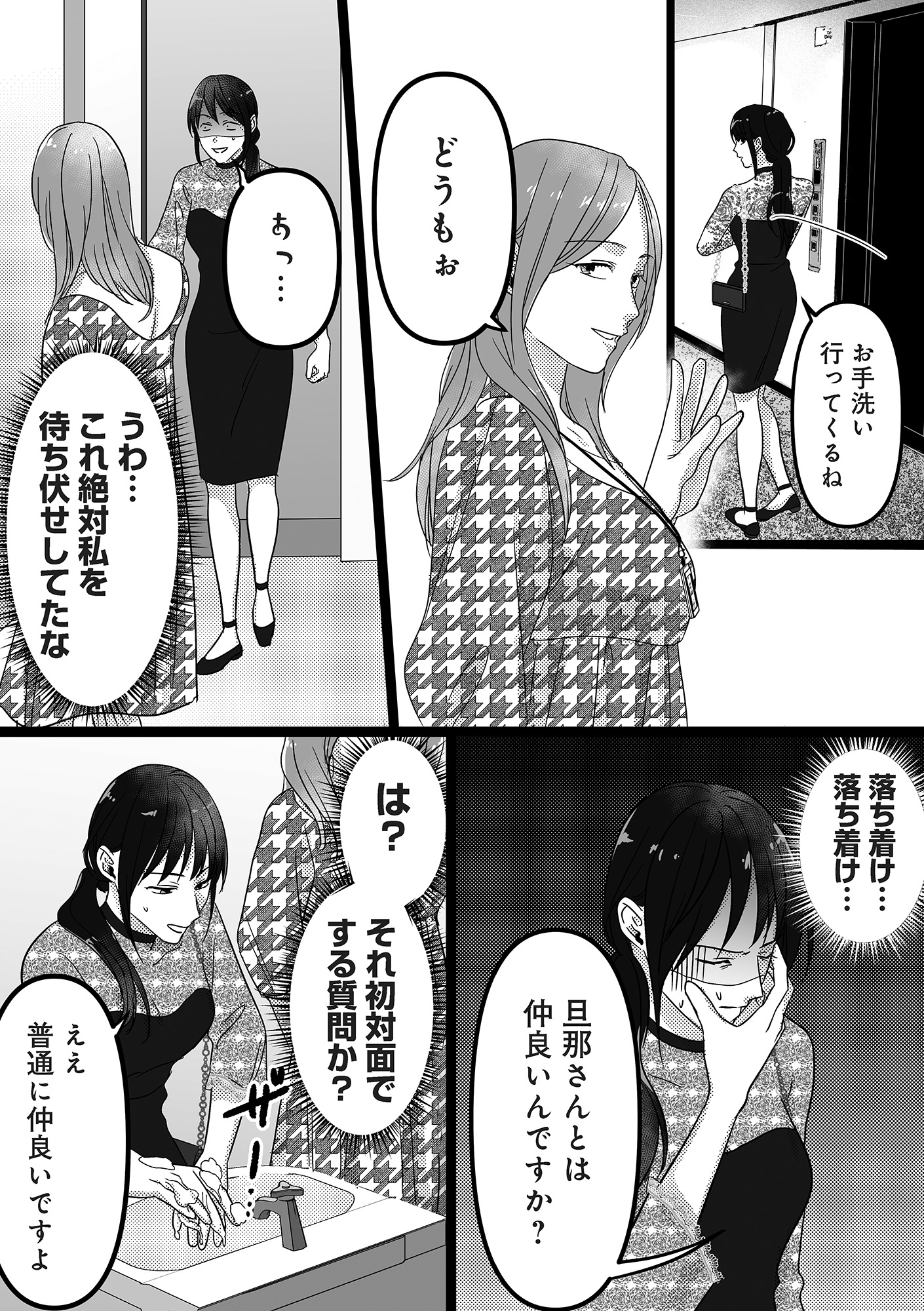 「はじめまして」夫の不倫相手が目の前に現れる! 動揺する夫は、冷や汗ダラダラ…【私、「サレ妻予備軍」になりました。 #11】