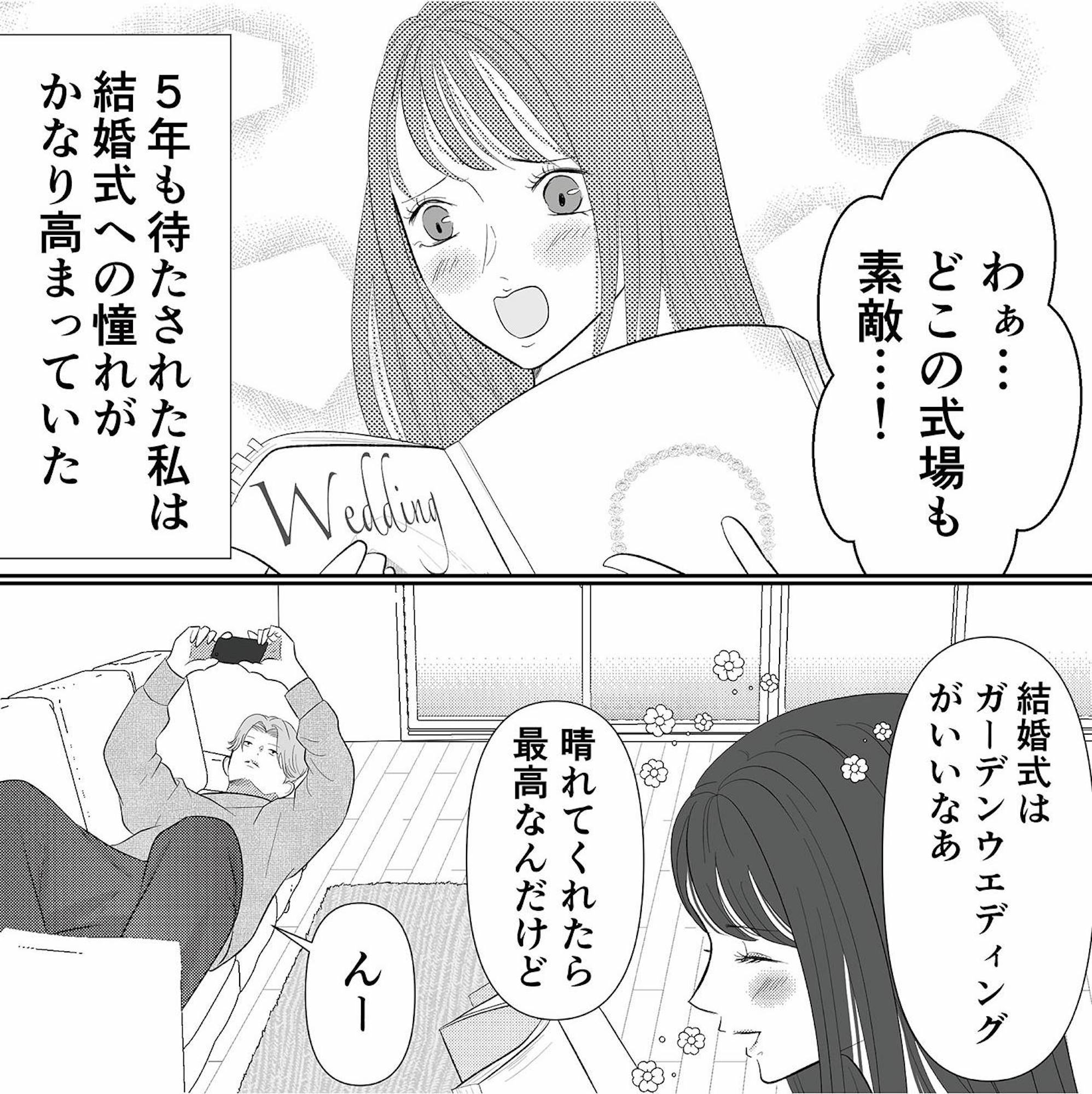 幸せな結婚を夢見る愛美。結婚を前提に交際を始めた瑛二とは、気づけば5年の月日が流れていた。