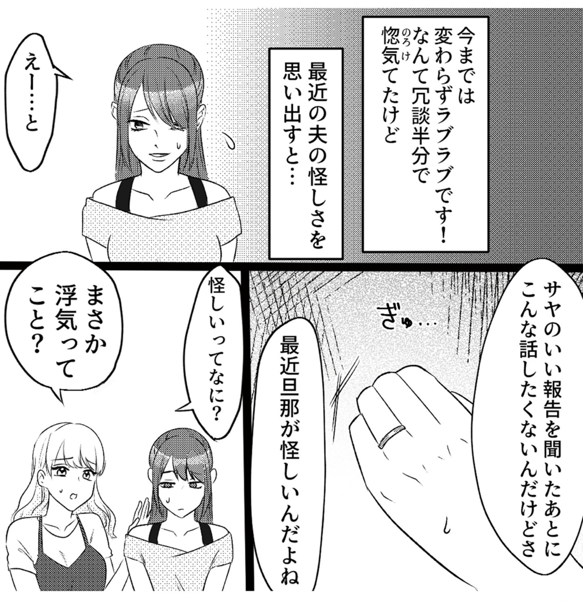 親友の助言で浮気調査を始めた妻は、やがて衝撃の事実を知ってしまい――。
