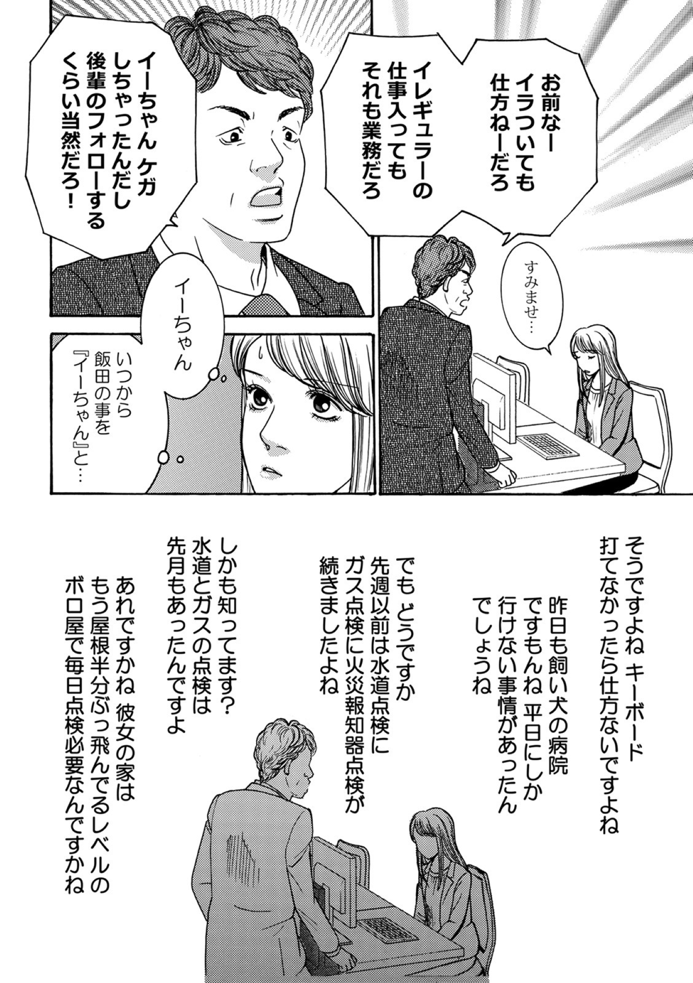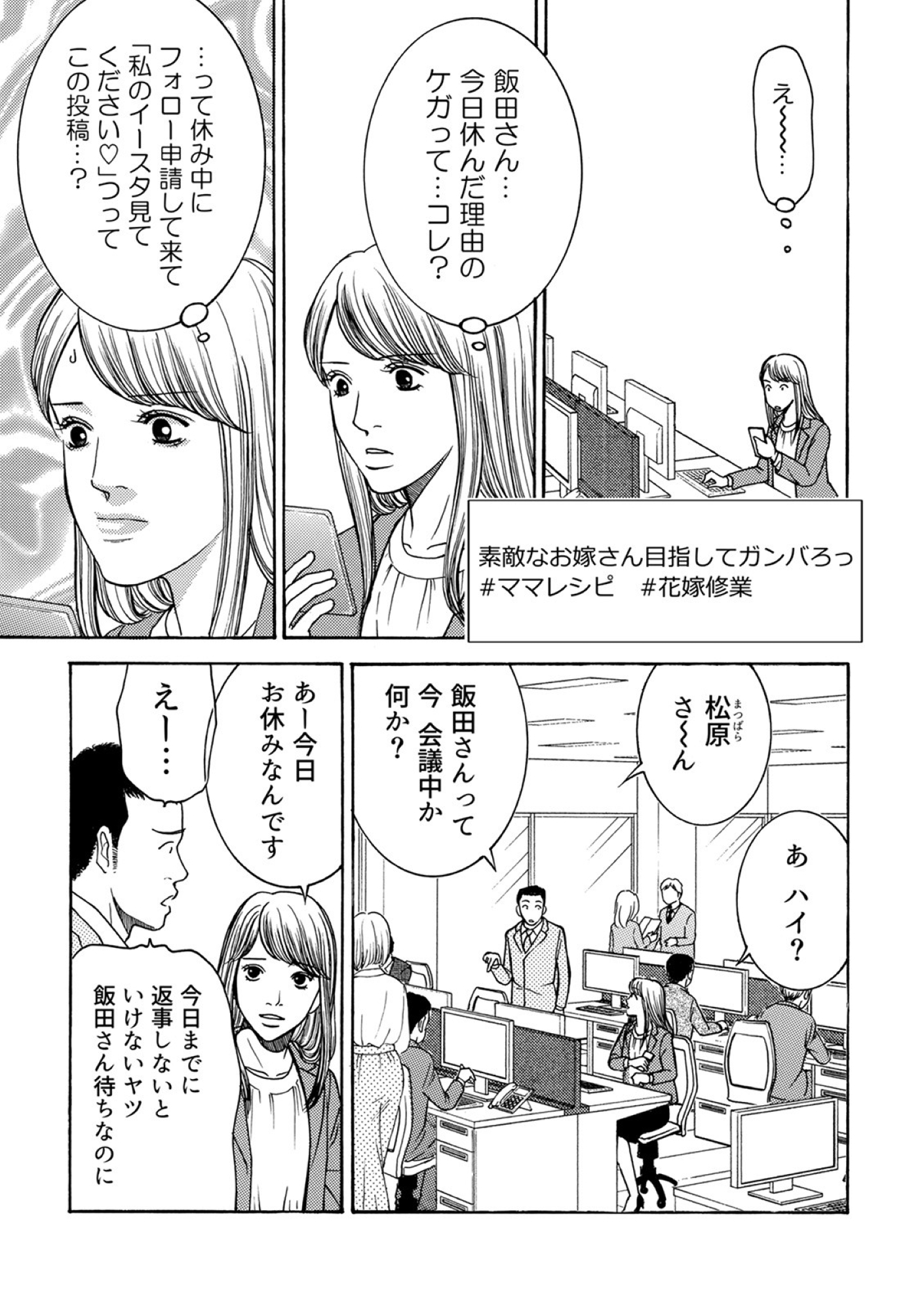 ズル休みするのが当たり前! 目に余る勤怠を繰り返し、周囲を苛立たせる企画部の問題児・飯田美和。 そんな彼女に振り回され、我慢の限界を超えた松原は人事部の門を叩く。 冷ややかな視線とマシンガントークが武器の通称「社内探偵」を名乗る人事部の何でも相談担当・久我ありさが社内のモヤつきを容赦なく暴き、ブッタ斬る! ※本記事は、作画・かたおかみさお 、原作・egumi の電子書籍『社内探偵』から一部抜粋・編集しました。 ****** 関連記事飲み会の幹事を頼まれたら、あなたは【うっかり失礼な振る舞い】をしない自信ある? ちょっとしたパーティーでやりがちな無礼な対応10選「隣の席の人が臭い!」芸人・小籔千豊なら、スメハラ問題とどう向き合う?職場の「においトラブル」に実体験からアドバイス「お育ちのいい人」が劇場やホールでしない10のこと。どなたも教えてくださらなかったの?失礼な人と育ちのいい人、明確な差がついてしまう意思疎通のマナー(前編)47歳でヨガインストラクターへの転身。「自分らしさ」を求め地元へUターンした女性の「光と影」