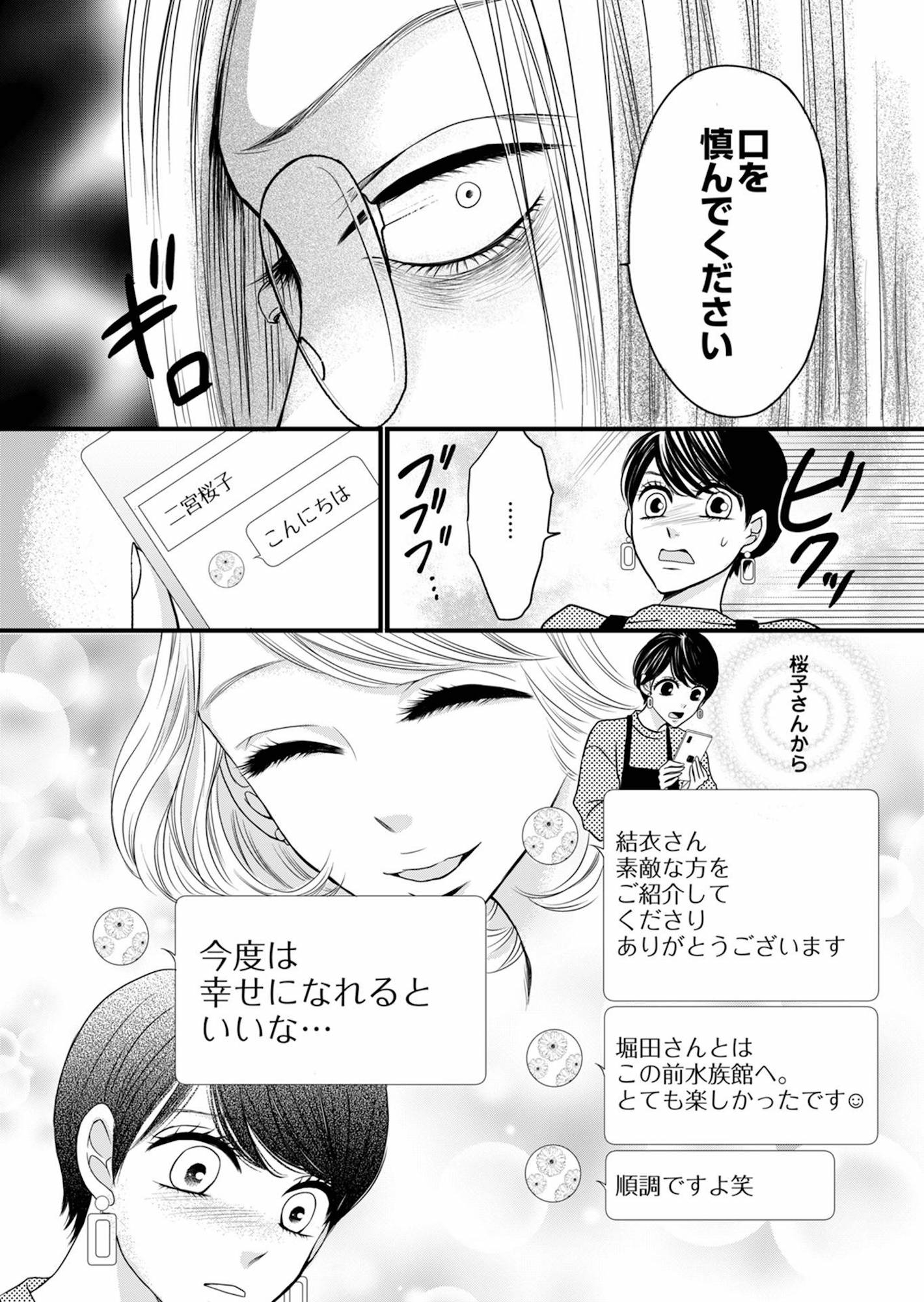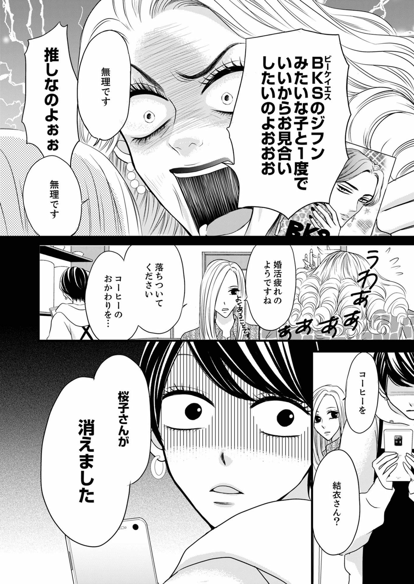 婚約者が別の女性を妊娠させ、婚約破棄になった結衣。 「絶対結婚してやる」と意気込んで会社を退社。婚活に奮闘するも、厳しい現実が待っていた。 意気消沈する結衣だが、成婚率100%の伝説の婚活コンシェルジュ・束愛子との出会いがきっかけで人生の転機が訪れる――。 ※本記事は、池田ユキオ著の電子書籍『婚活ブラックコンシェルジュ 束 愛子~それでも結婚したいですか?~』から一部抜粋・編集しました。 ****** 関連記事条件なんておいといて。私にとって運命なのはこの人!【婚活記まとめ245】頂点から転げ落ち、SNSの怖さを思い知る!完全に居場所を失った港区女子の結末は…【私が港区でナンバーワン #4】不倫の慰謝料、そして流産…ピュアな女子大生がハマったドロッドロの沼【なぜ彼女は独身なのか?】(208)20・30代ならよくても…「40代ではさすがにナシ」男に厳しいジャッジを下される女の特徴3例あれだけしたかったのに…?欲がスーッと引いた理由って【実話婚活マンガ】(前編)