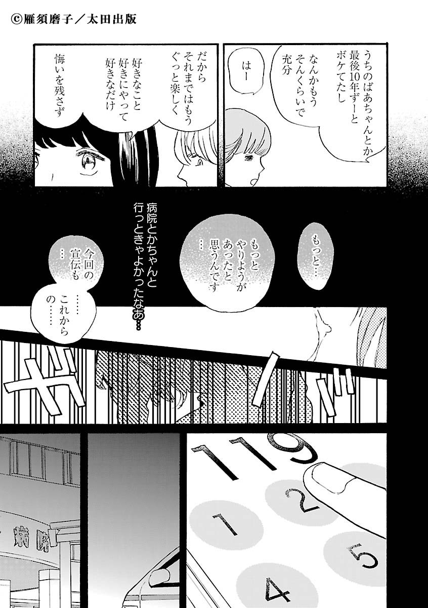 40代がぶち当たる「壁」をあまりにもリアルに描き出し、熱く静かな共感をさらった雁須磨子さん『あした死ぬには、』2巻が発売されました。1巻の冒頭を12日連続で特別配信します。私たちの身体、どうなる?