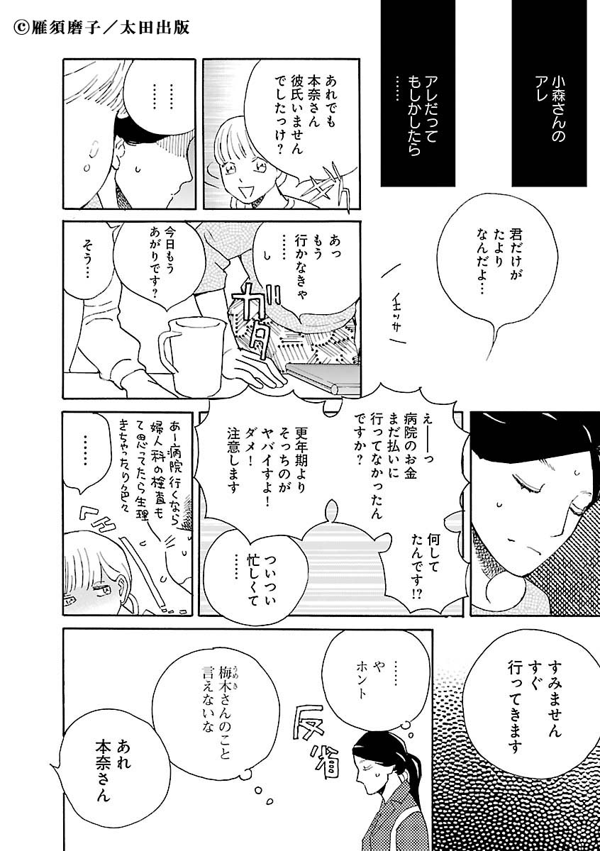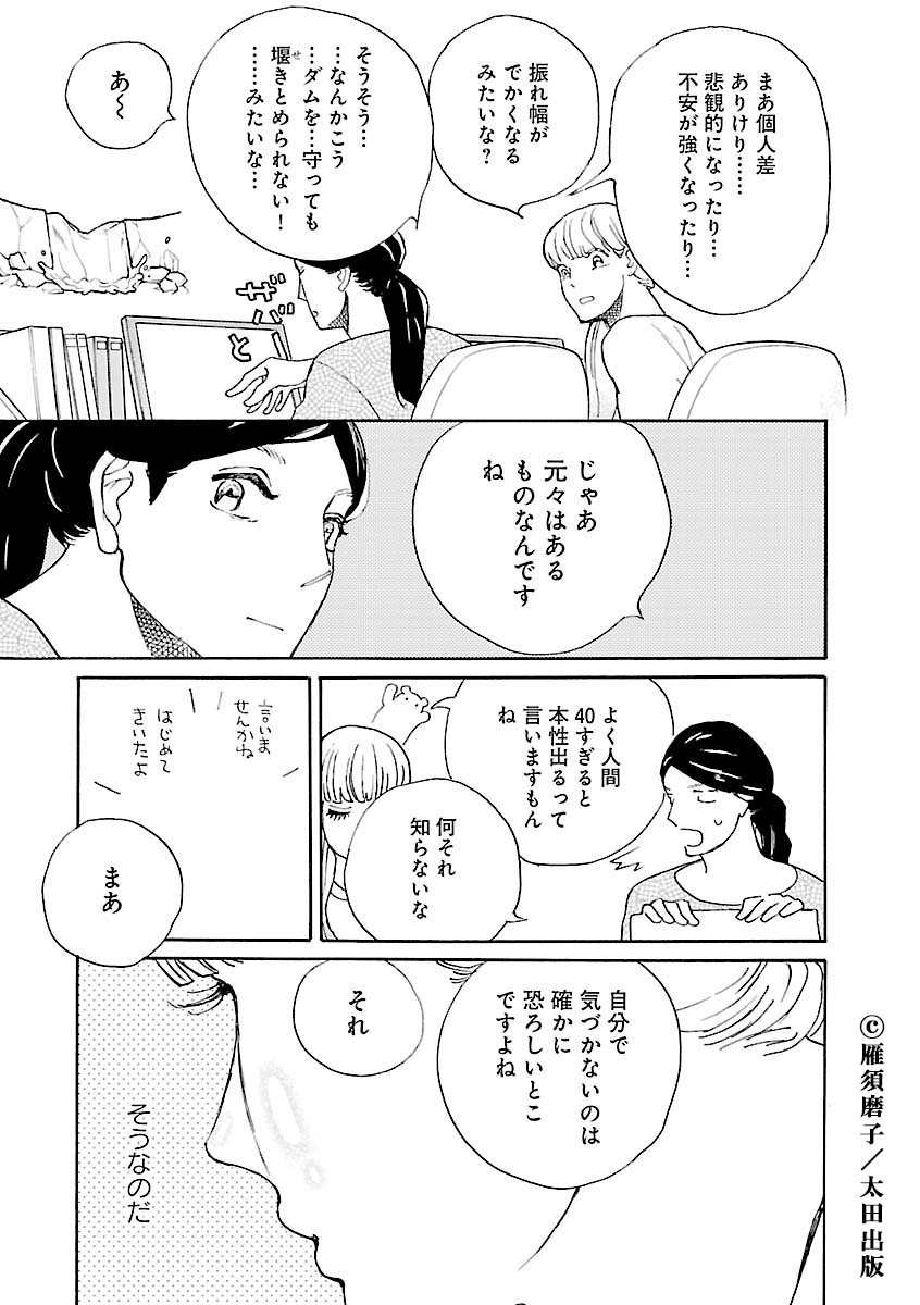 40代がぶち当たる「壁」をあまりにもリアルに描き出し、熱く静かな共感をさらった雁須磨子さん『あした死ぬには、』2巻が発売されました。1巻の冒頭を12日連続で特別配信します。更年期って、こんなふうに始まるの…?