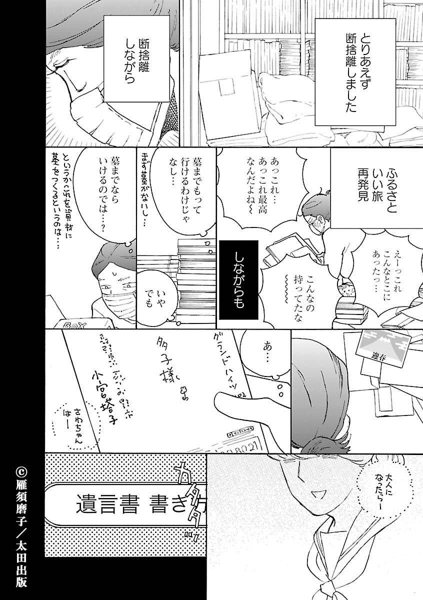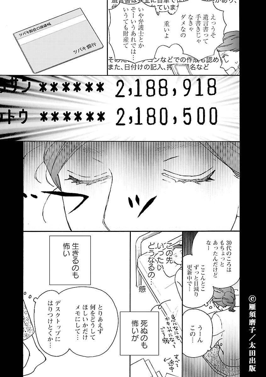 40代がぶち当たる「壁」をあまりにもリアルに描き出し、熱く静かな共感をさらった雁須磨子さん『あした死ぬには、』2巻が発売されました。1巻の冒頭を12日連続で特別配信します。まず、みんなが始めるのは…。