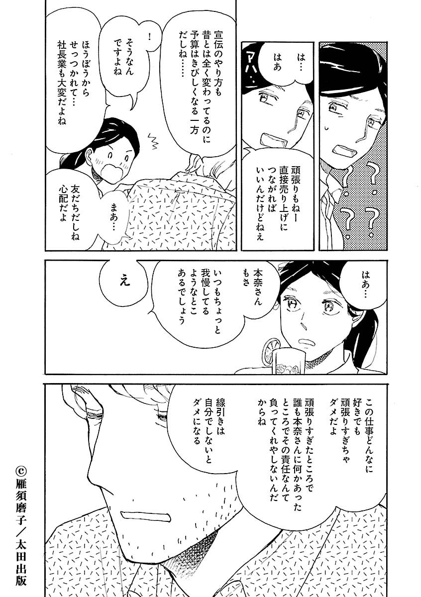40代がぶち当たる「壁」をあまりにもリアルに描き出し、熱く静かな共感をさらった雁須磨子さん『あした死ぬには、』2巻が発売されました。1巻の冒頭を12日連続で特別配信します。働くって、ストレス…。