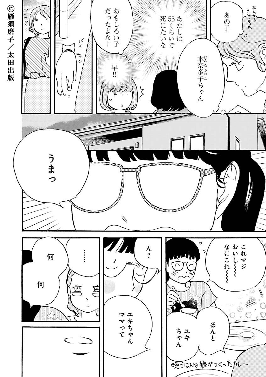 40代がぶち当たる「壁」をあまりにもリアルに描き出し、熱く静かな共感をさらった雁須磨子さん『あした死ぬには、』2巻が発売されました。1巻の冒頭を12日連続で特別配信します。私、おばさんなんだね。