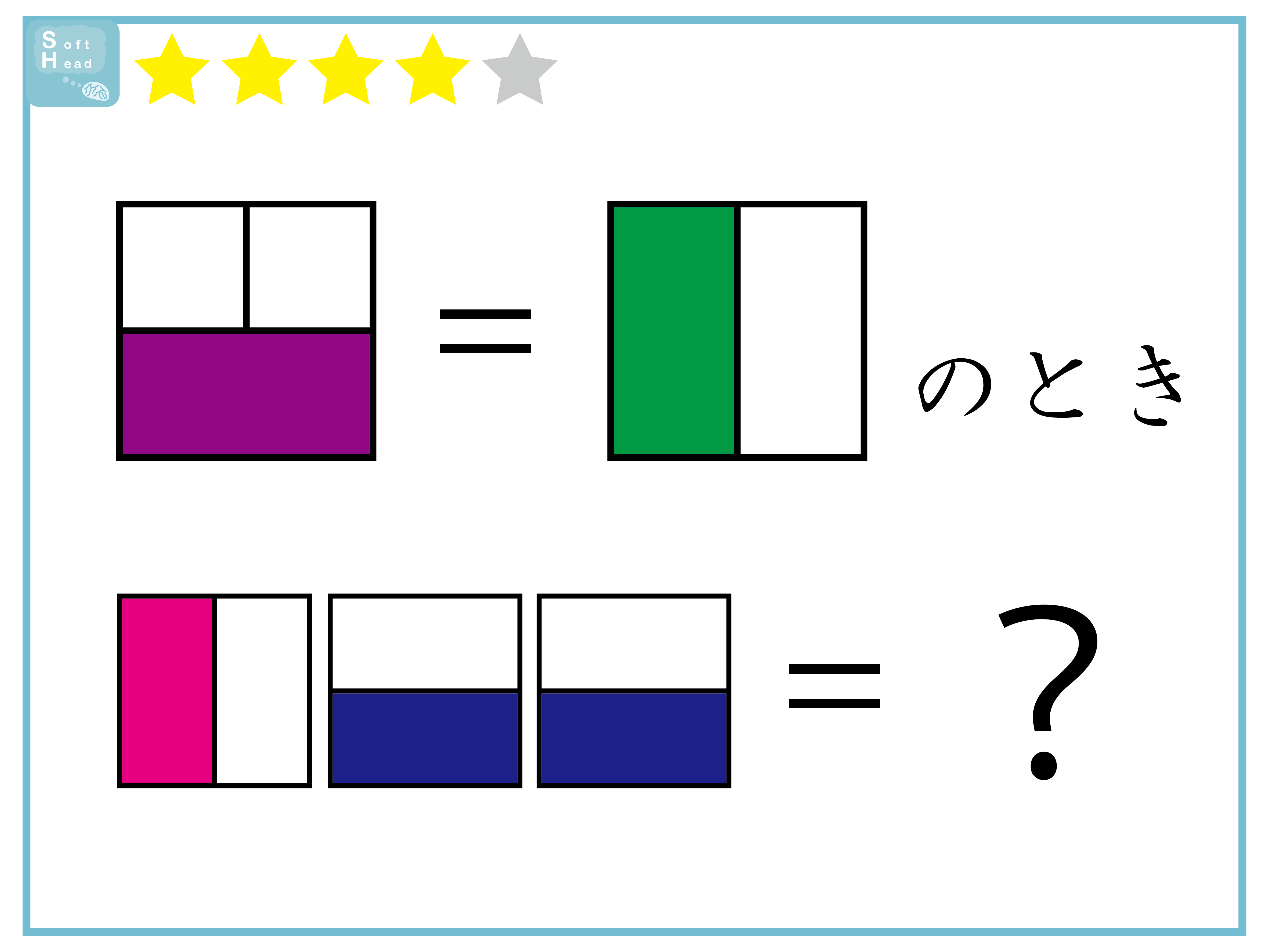 また、それぞれの四角は漢字のパーツを表していました。上の等式は、