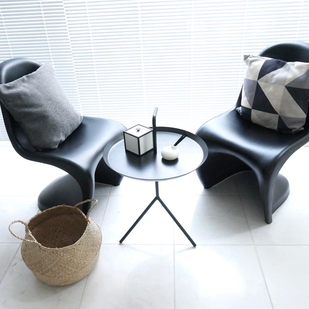 お部屋の印象を引き締める目的で黒を追加する場合は何箇所かに配置し、一点にかたまらないように配慮するのが鉄則ですよ。