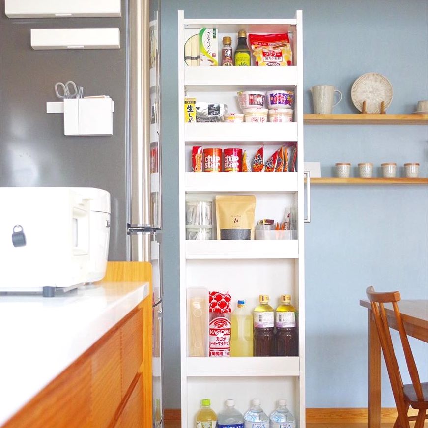 キッチンのわずかな隙間部分を収納に役立てられると嬉しい気分になりますね。