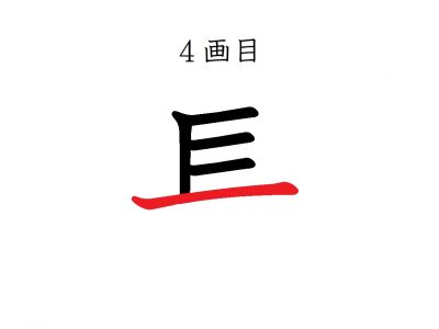 続けて長い横画。この画でこの漢字の幅が決まります。この漢字は縦長に書いた方が美しいので、全体が長方形になるイメージを意識して書きます。