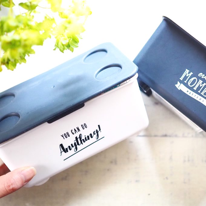 バイカラーのフタ付きボックスは、開け閉めしやすいフタ付きで、カジュアルな雰囲気漂う外観も魅力です。