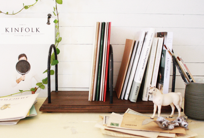 端材で作ったブックスタンドは、リビングに置いておいてもしっくり馴染むシンプルなデザインです。