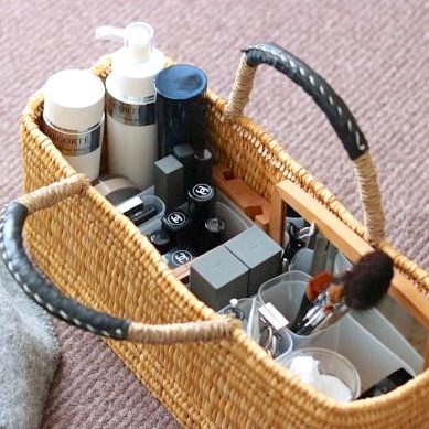 こちらのインスタグラマーさんは、かごバッグに化粧品を収納。収納ボックスを中に入れておくと、上手に整理整頓ができます。