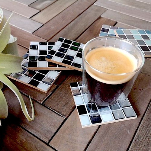 セリアのモロッカン柄のタイルシールと木板を使った、デザイン性のある高見えコースター。