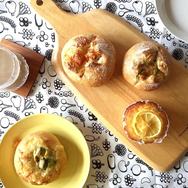 ティーマイエローに買ってきたパンをのせた、気分が上がりそうな朝食タイムです。