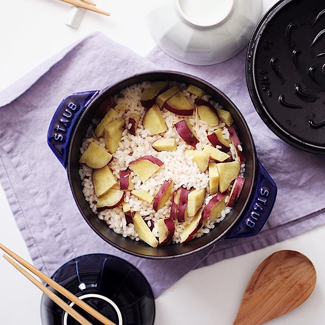 さつまいもは水にさらし、油揚げは油抜きをすることで味が染み込みやすくなりますよ。炊飯器で炊くときの水分量は通常でOKです。色鮮やかな主食は食べていても楽しいですよね。おにぎりにしてアレンジするのも良いでしょう。