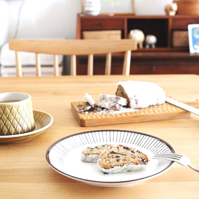 スピサリブのプレートにシュトーレンをそっとのせた、冬のおやつタイム。