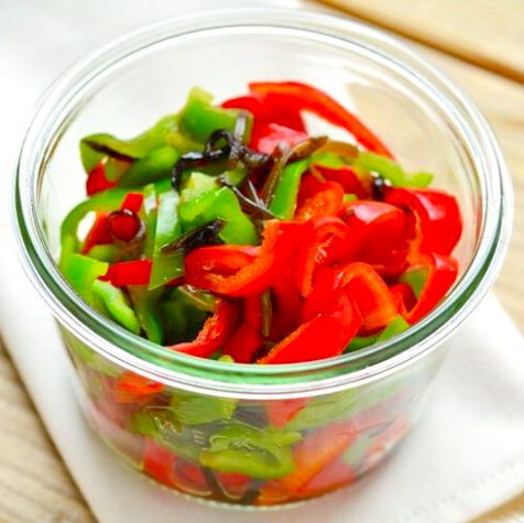 こちらはピーマンと塩昆布だけで作るとっても簡単なレシピです。ピーマンは細切りにしてサッと茹でておき、水気を切ったら塩昆布で和えるだけで完成です。