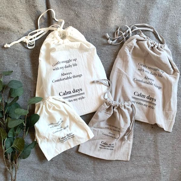 一つ前の巾着バッグと同じデザインの、キャンバスバッグです。2つセットになったお得なアイテムは、マチが付いているので自立してくれます。