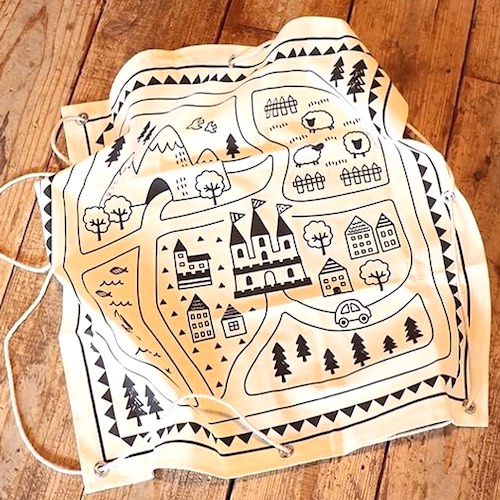 こちらの巾着マットは、プレイマットとして使って遊ぶことができるだけではなく、遊び終わったら巾着のように収納することができます。