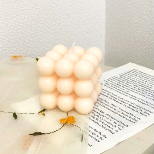 小さなボールを積み上げたような形が愛らしいキャンドルです。こちらは「apres jour×ARIAZ」のもの。