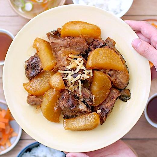 野菜と一緒にじっくりと煮込んで味をなじませてくださいね。白醤油を使用していて、見た目よりはさっぱりと食べられる煮物です。