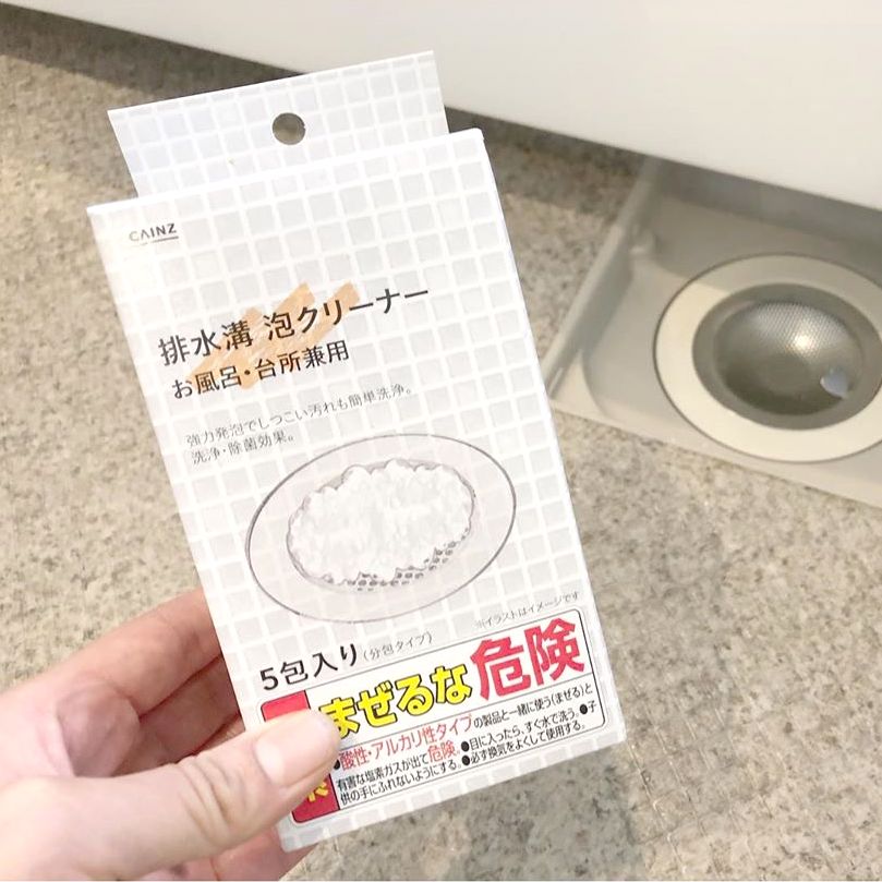 カインズには塩素系の排水溝泡クリーナーがあります。浴室やキッチンなどの排水溝掃除に最適です。