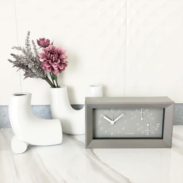 人気のグレージュカラーがおしゃれな、スリーコインズの置時計。