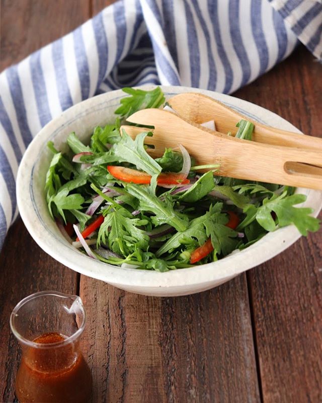 春菊をたっぷり使用したこのレシピは、生野菜をたっぷり食べられる人気おかずです。