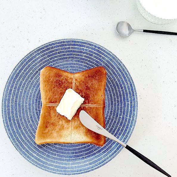 いつもの朝食の食パンを、24hアベックのプレートに添えて見るとグンとおしゃれな雰囲気になりますね。