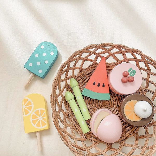 アイスキャンデーやおいしそうなスイーツが可愛いですね。女の子受け間違いなしの可愛い木製玩具です。