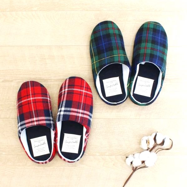 同じくCouCouのルームシューズですが、こちらは秋冬インテリアにぴったりなチェック柄がおしゃれ。大きめなタグも付いたデザイン性のあるアイテムです。