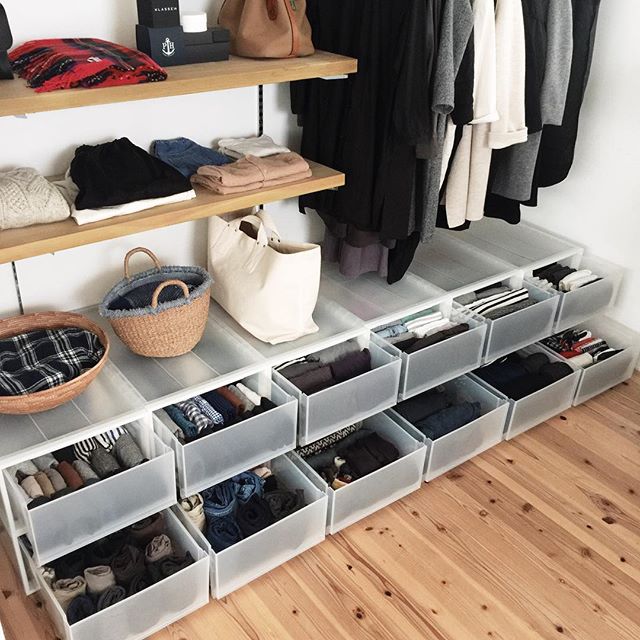 縦に入れるとたくさんのマフラーが入りますよ。3段のケースに入れてそれぞれ使わない衣類をしまうと良いでしょう。