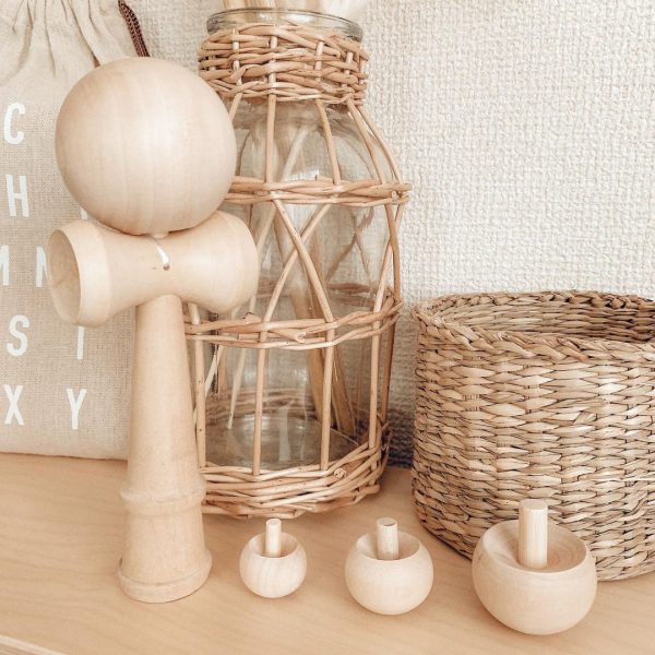 ナチュラルな木製のけん玉と逆さコマは、インテリアにも馴染んでくれるおしゃれアイテムですね。