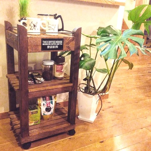 自身で作ったカフェトレーをリメイクして、キッチンワゴンに変身させた方もいらっしゃるようです。