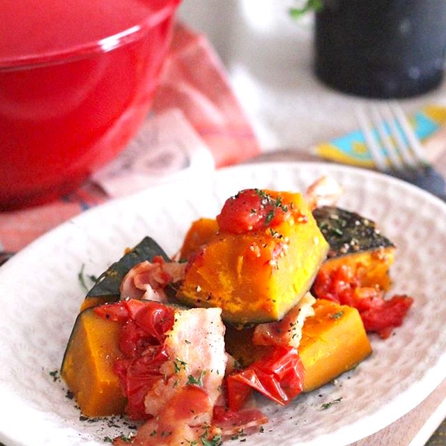 塩麹のコクにトマトの旨味がプラスされ、より濃厚になったかぼちゃの味を楽しめますよ。
