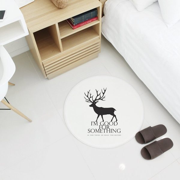 可愛らしくなり過ぎないモノトーンがおしゃれな円形ラグには、部屋全体を整然とした印象にコーディネートしてくれますね。