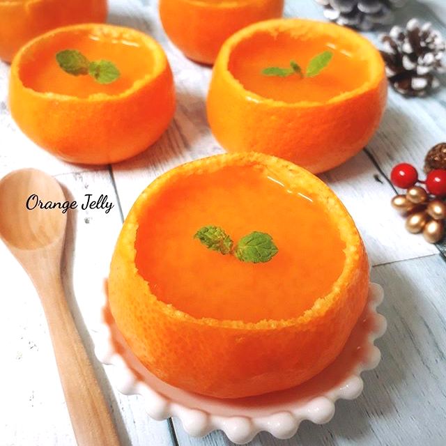 みかんを大量消費したい時は、ゼリーが簡単でおすすめです。こちらはみかんを丸ごとくり抜いて、器にも活用した人気のアレンジレシピです。