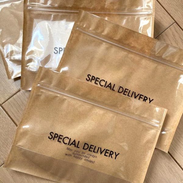 こちらはダイソーから4つセットになった、底マチ付きのクラフトジップバッグです。