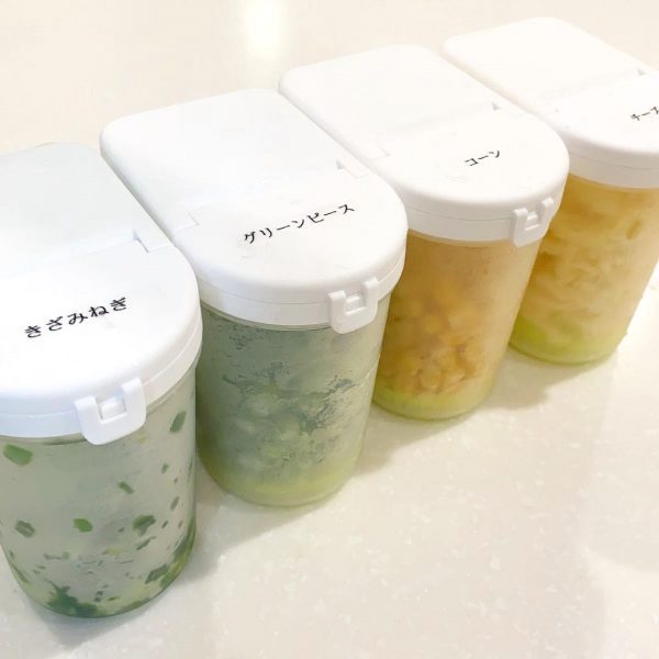 シャカシャカねぎポットは冷凍庫に入れて使うことができるので、冷凍ねぎや冷凍コーンなどの野菜を入れて使うのがおすすめです。