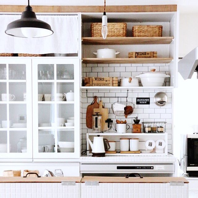 写真のキッチンはお鍋やケトルなどのキッチン雑貨も、白でまとめているのが印象的ですね。