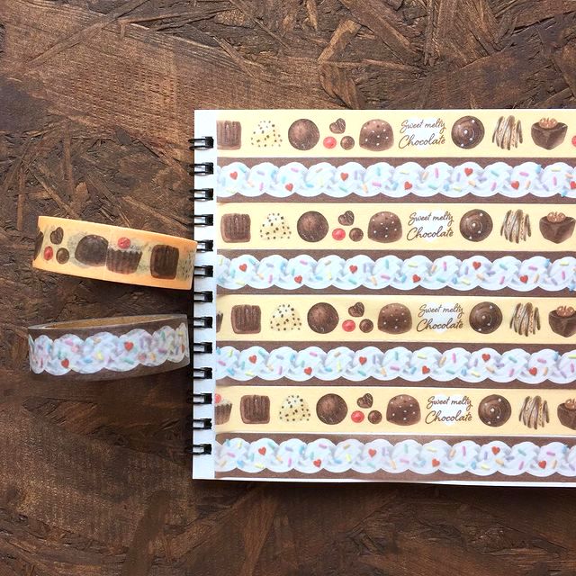こちらは、チョコレート感満点のマスキングテープ。使いやすいナチュラルカラーなので、どんなラッピングにもあわせられますよ。