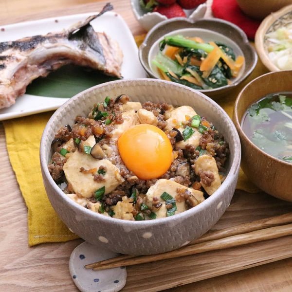 豆腐とひき肉の甘辛丼は麻婆豆腐と似ていますが、豆板醤がなくてもおうちにある調味料で作れる大人のための節約レシピです。