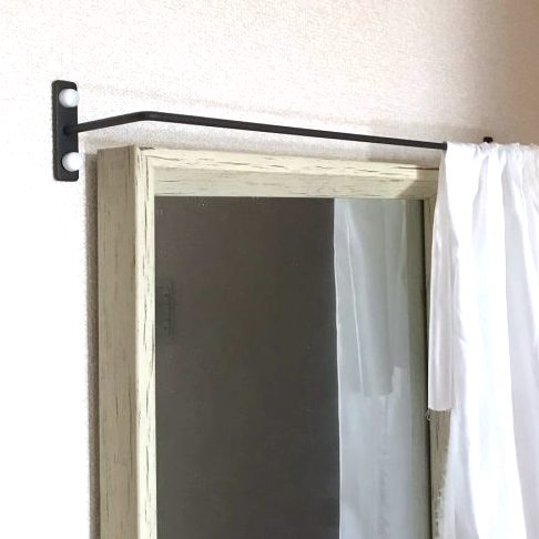 アイアンバーを壁に設置する前に、布を姿見と合わせて丈を確認します。