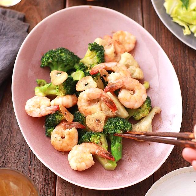 海老とブロッコリーやカリフラワーをサッと炒めて作るおすすめのレシピです。