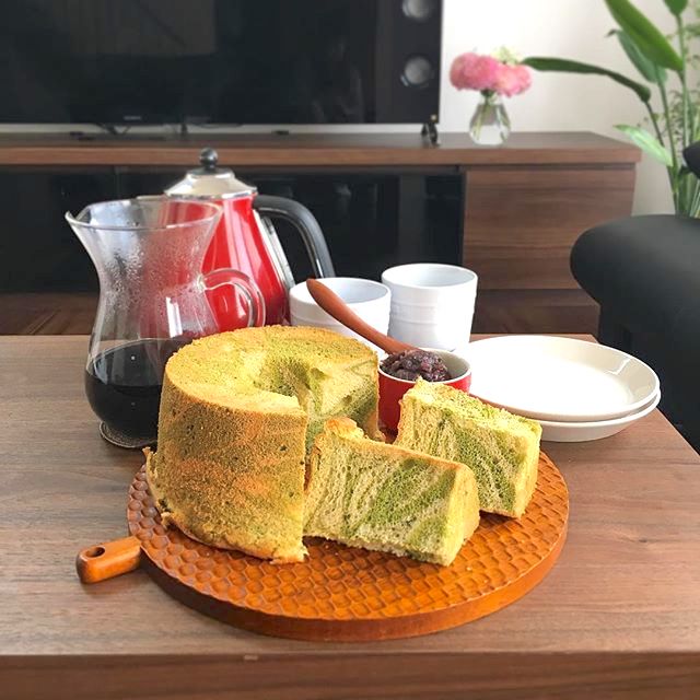 こちらは抹茶生地でマーブルにしたレシピで、和食の食後にもちょうど良いですよ。