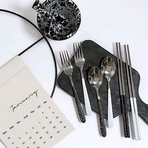 ダイソーのマーブル柄カトラリーは落ち着いた雰囲気でおしゃれなアイテムです。