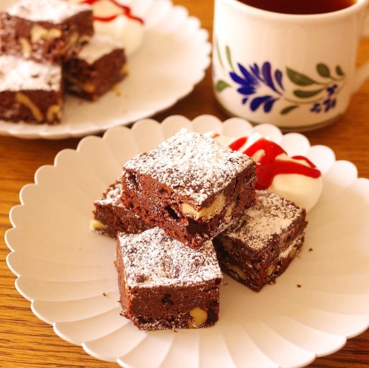 こちらのブラウニーも電子レンジでチンするだけで作れるので、スイーツ作りのハードルが下がります。
