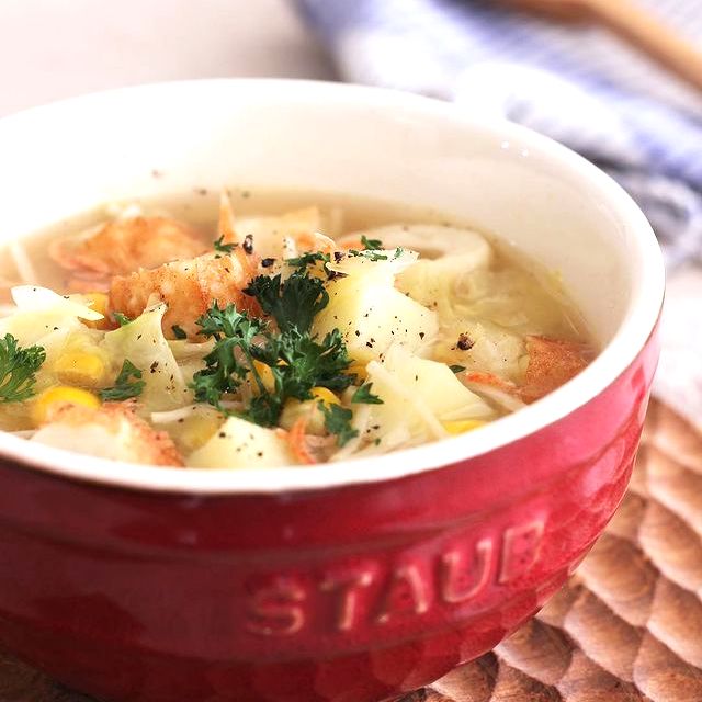 キャベツや野菜から染み出たビタミンもスープでしっかりいただきたいですね。